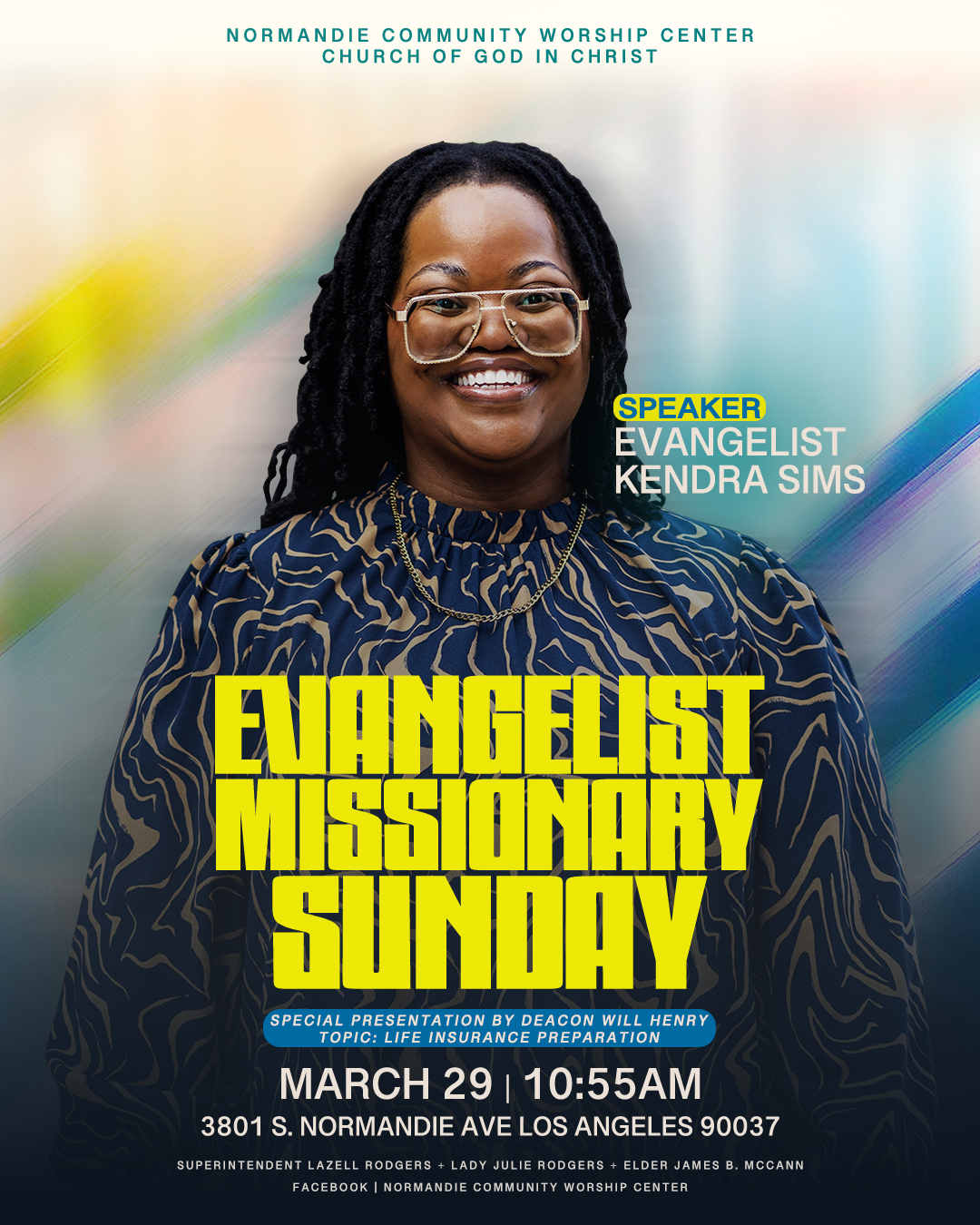 Normandie Community Worship Center COGIC graphic and branding were designed with a spring inspired aesthetic and a youthful touch, highlighting the young adult speaker featured for the service. The overall design aimed to give the church a fresh, modern feel through the use of color, layout and visual elements.