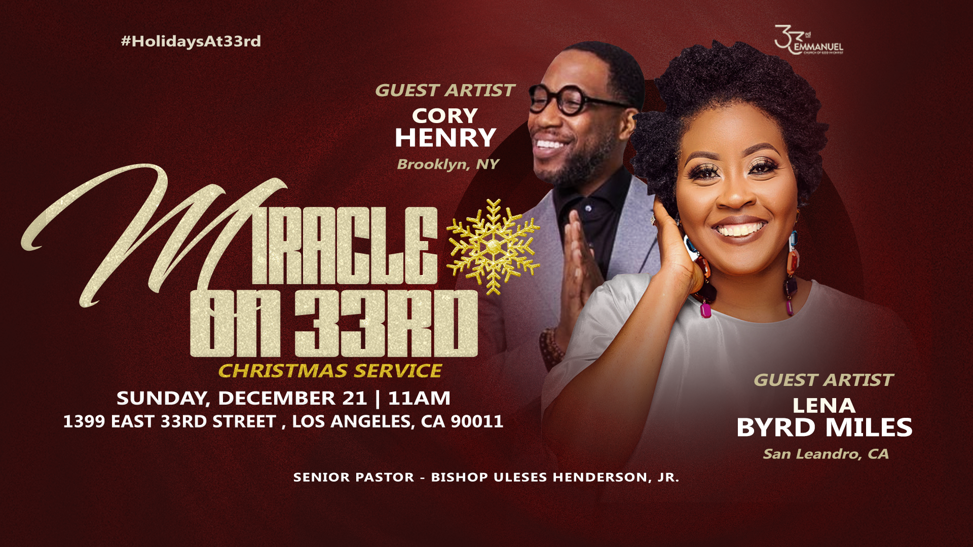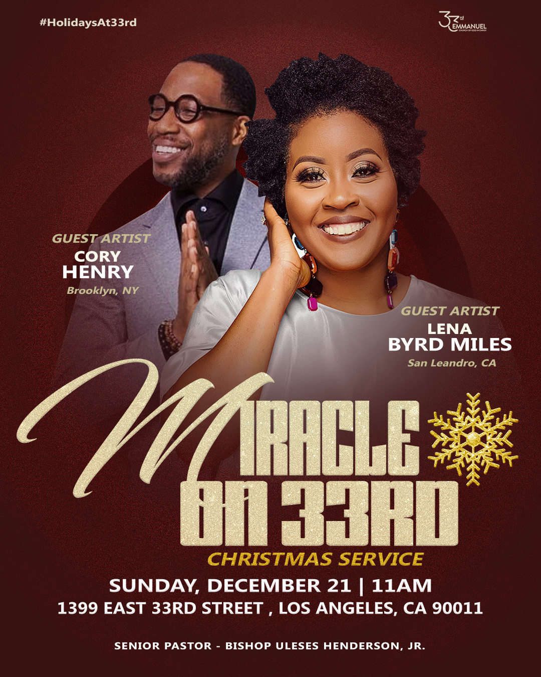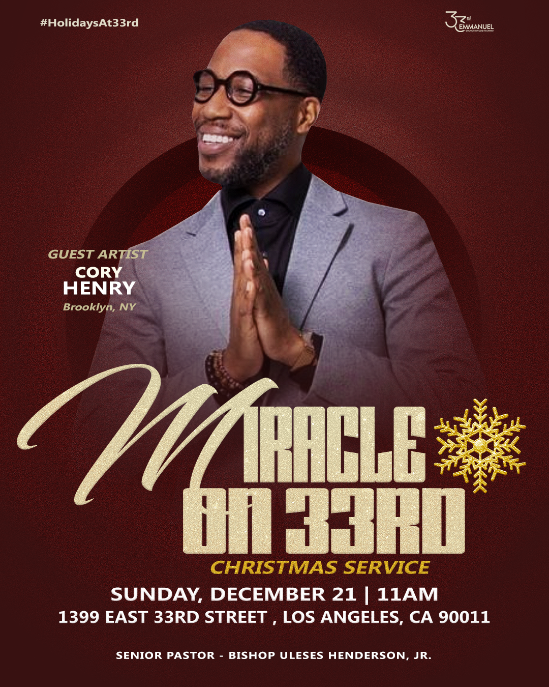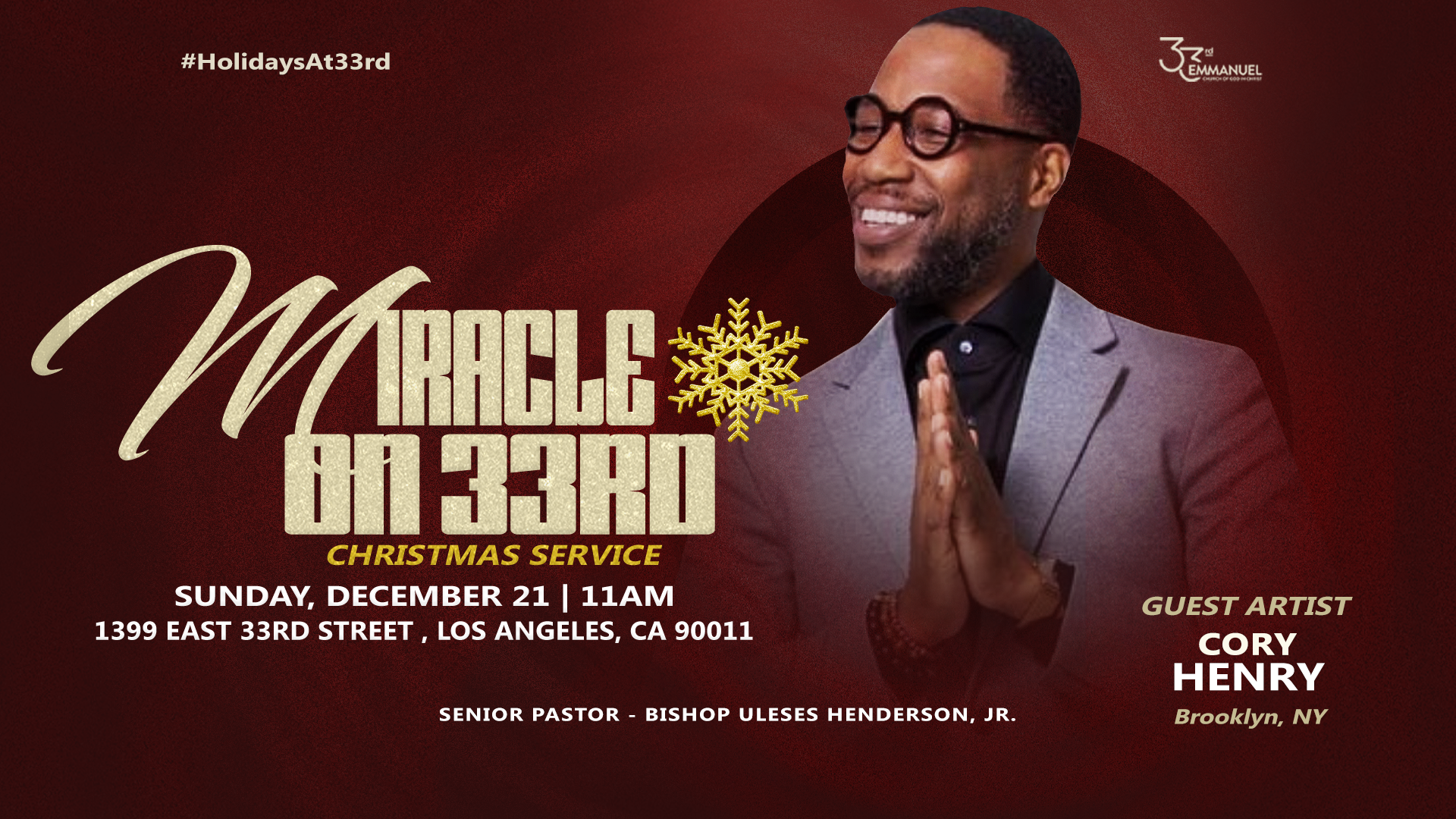For Holidays at 33rd Emmanuel I developed a Holiday brand and graphics package designed to spotlight each service while still giving every event its own visual presence. The campaign balanced cohesion and individuality, ensuring the overall holiday experience felt unified while each event remained uniquely highlighted.