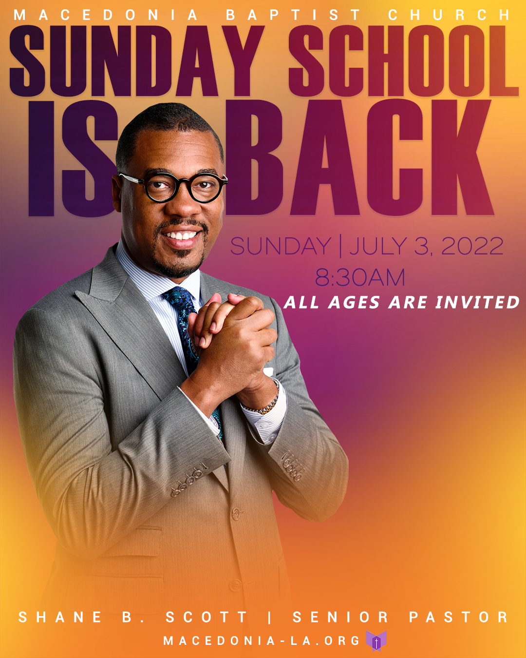 The Macedonia Baptist Church Sunday design was created to mark the return of Sunday School with a fresh and uplifting visual approach. My goal was to design something that introduced a renewed sense of energy while remaining rooted in warmth and familiarity. This design supports the church’s mission by welcoming both returning and new attendees as it reintroduced this important part of its Sunday experience.